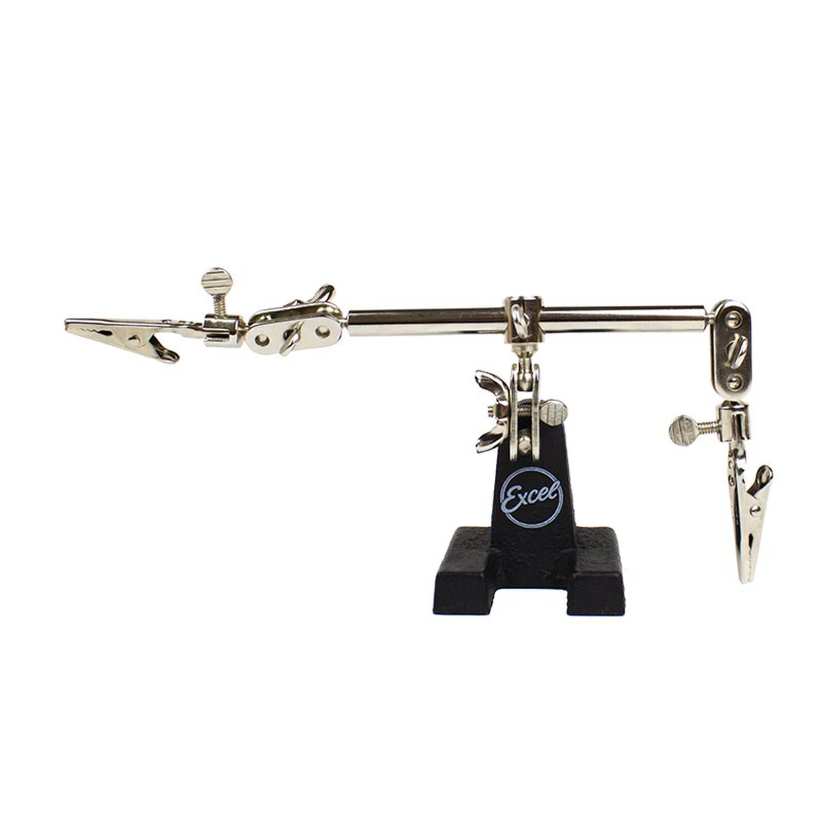 Extra hands is designed to assist in holding of objects leaving hands free to work on projects. Weighted base assists in precise positioning of objects with alligator clamps attached to ball joints for holding at any angle. Multiple adjustable points of positioning to ensure full movement of object